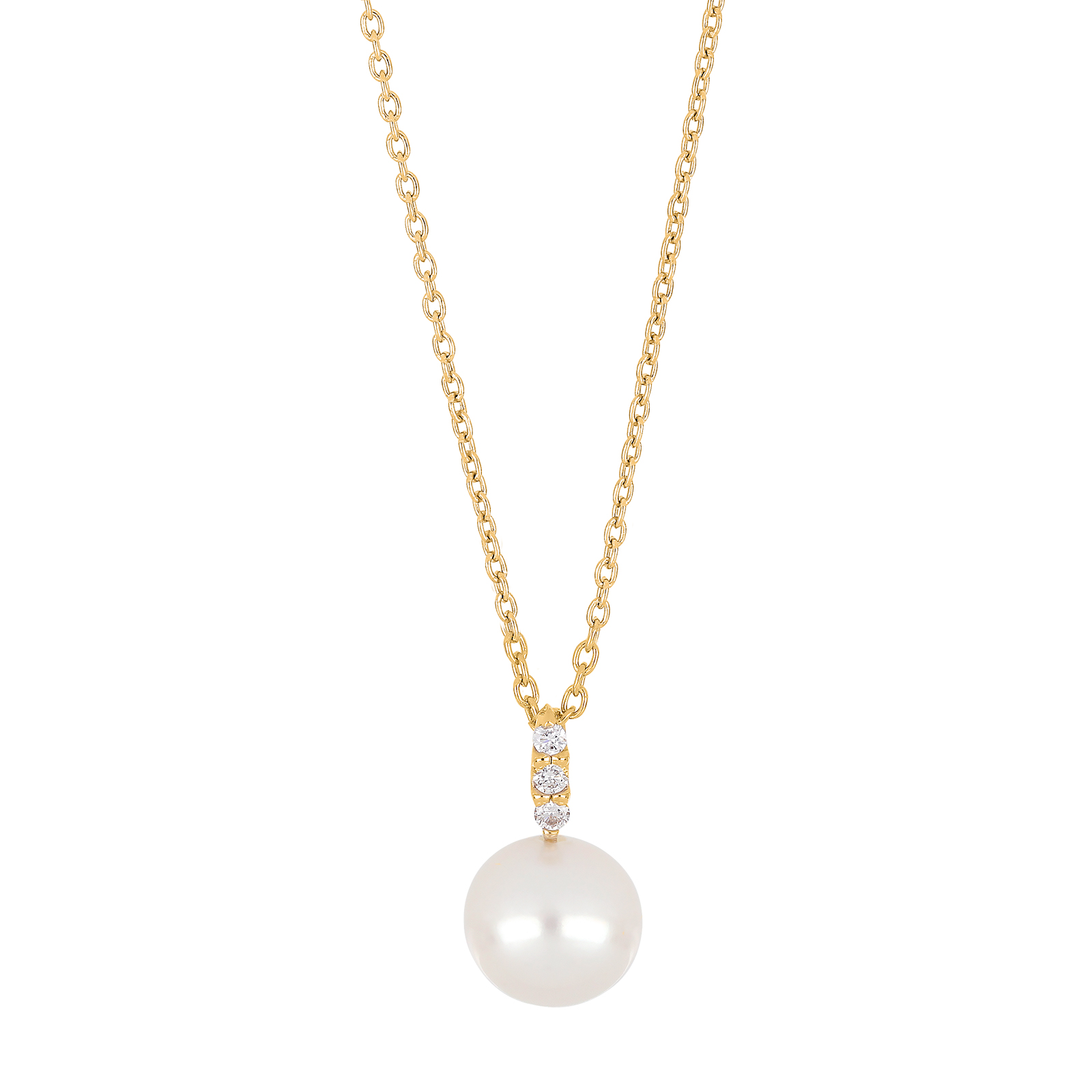 Dette 14 kt. guldvedhæng forener en strålende hvid perle med en funklende diamant på 0.045 ct W/SI – et klassisk design skabt til kvinden, der elsker diskret luksus. Den næsten farveløse diamant fremhæver perlens naturlige glød og skaber et raffineret udtryk, som løfter både hverdag og fest. Et smykke, der føles personligt fra første øjeblik.