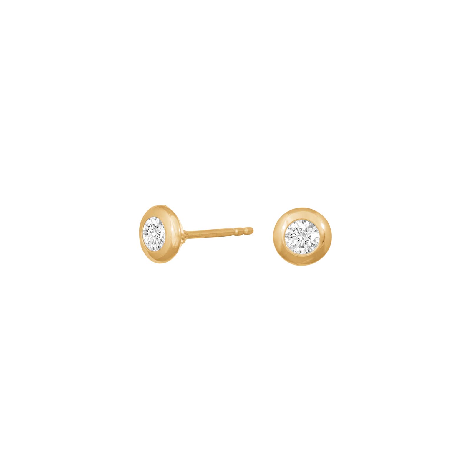 Disse 14 kt. guldørestikker med 5 mm facetslebet zirkonia forener klassisk elegance med moderne prisbevidsthed. Den klare CZ-sten funkler som en diamant og fanger lyset fra alle vinkler. Rørfatningen omslutter stenen sikkert og skaber et stilrent udtryk, der klæder både mænd og kvinder – perfekt til hverdag og fest.