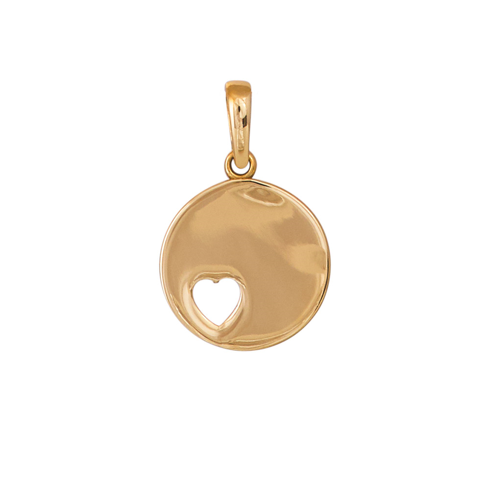 14kt. guldvedhæng rund plade m/hjerte 10mm
