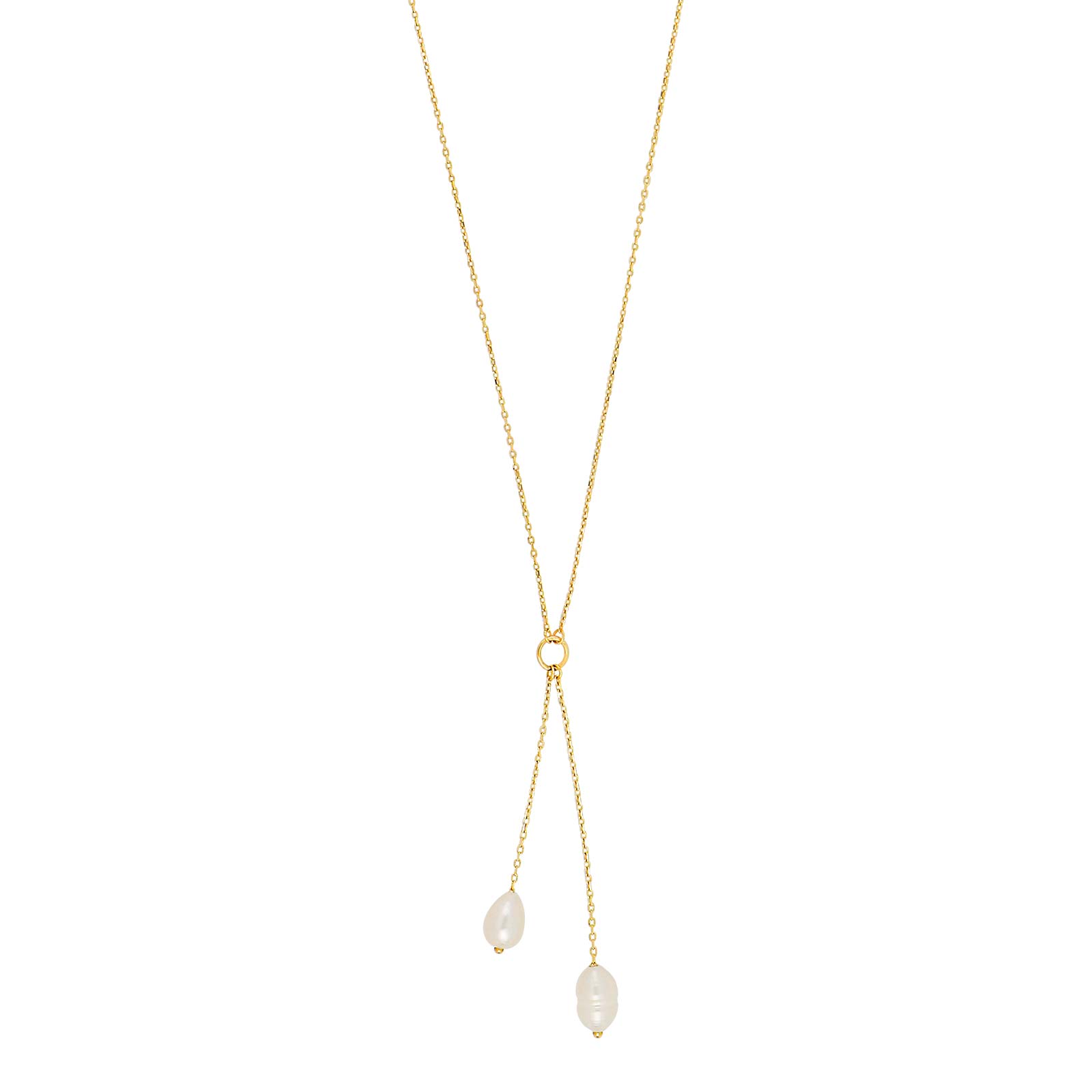 8kt. guld y-halskæde m/2 hvide ferskv.perler