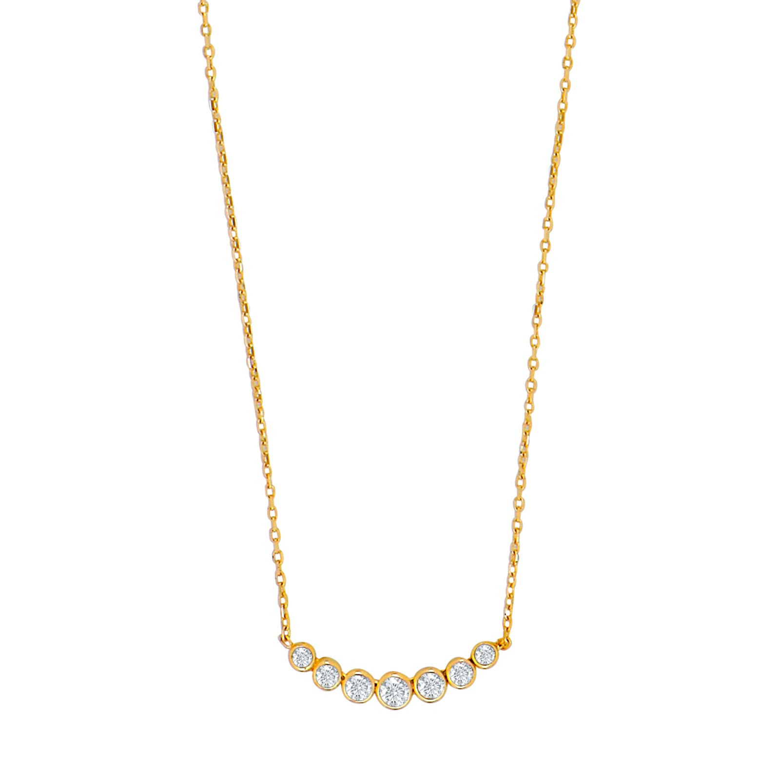 Denne 8 kt. guldhalskæde med CZ i rørfatninger fra Siersbøl er skabt til dig, der ønsker luksus i et diskret udtryk. De syv klare kubiske zirkonia-sten er placeret i en blød kurve, der smukt følger halsens linje og reflekterer lyset med en raffineret glans. Resultatet er et feminint smykke, der føles eksklusivt uden at virke prangende – perfekt til både hverdag og særlige øjeblikke.