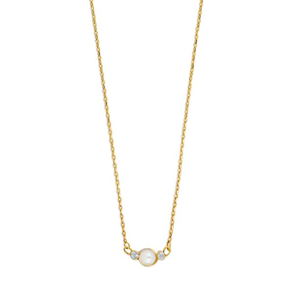 Denne 8 kt. guldhalskæde med perle og CZ er skabt til dig, der ønsker et elegant smykke, som aldrig går af mode. Den ægte ferskvandsperle udstråler blød luksus, mens de funklende cubic zirconia giver et strejf af moderne glamour. Resultatet er et feminint og harmonisk udtryk, der fremhæver din stil uden at dominere den.