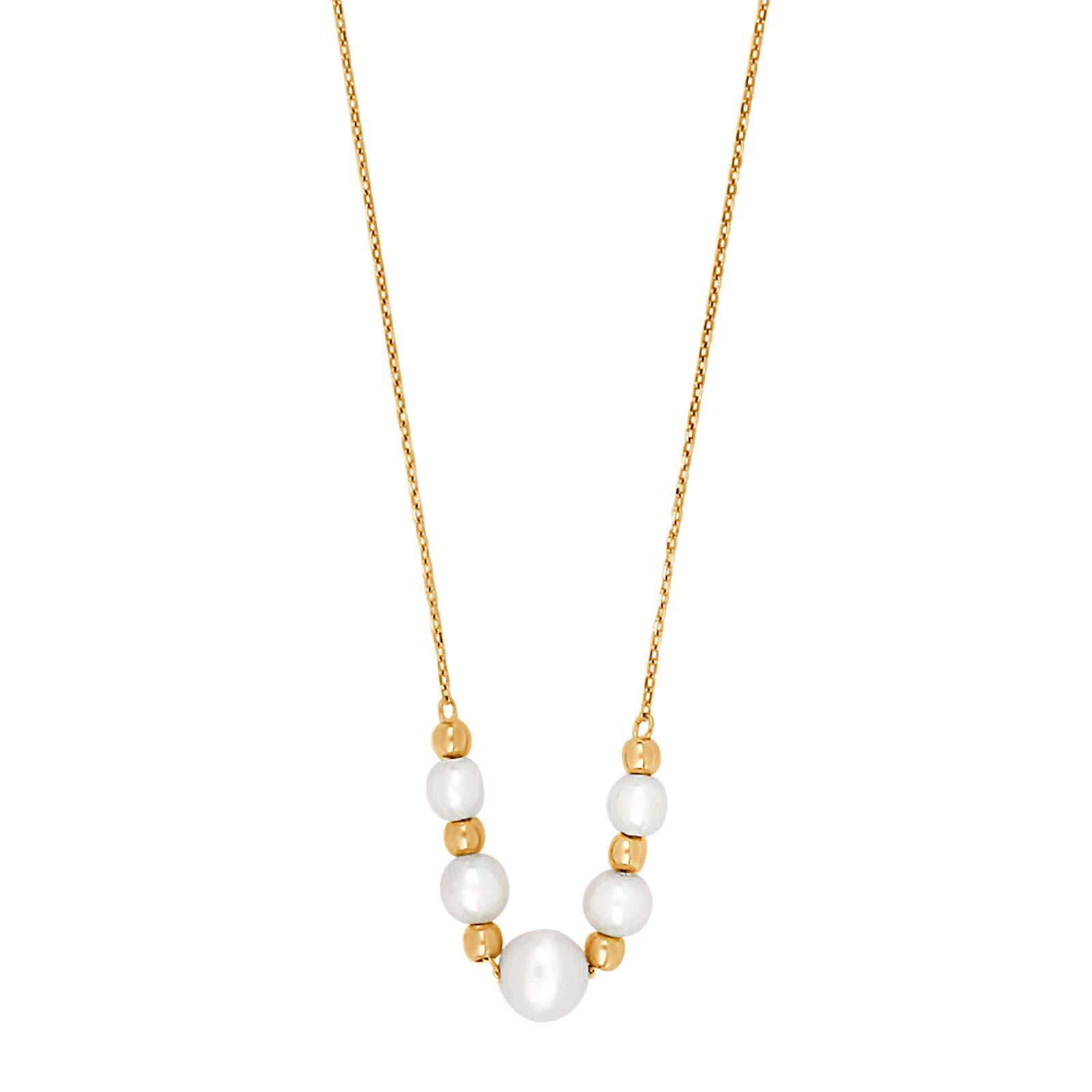 Oplev en **8 kt. guldhalskæde med perle**, der forener klassisk design med moderne holdbarhed. Det ikoniske *pind og perle*-look skaber en let, feminin elegance, som aldrig går af mode. Fremstillet i 8 karat guld med smukke 6 mm ferskvandsperler er denne halskæde skabt til at blive brugt – og beundret – hver eneste dag. Den justerbare længde på 42 + 3 cm sikrer perfekt pasform, uanset outfit og anledning.