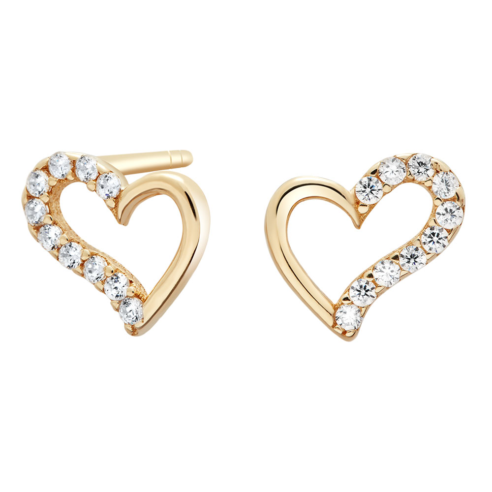 Forkæl dig selv – eller én du elsker – med ørestikker i 8 karat guld formet som et klassisk hjerte og funklende cubic zirkonia. Det varme guld fremhæver hudens glød, mens stenene tilfører diskret luksus til både hverdag og fest.