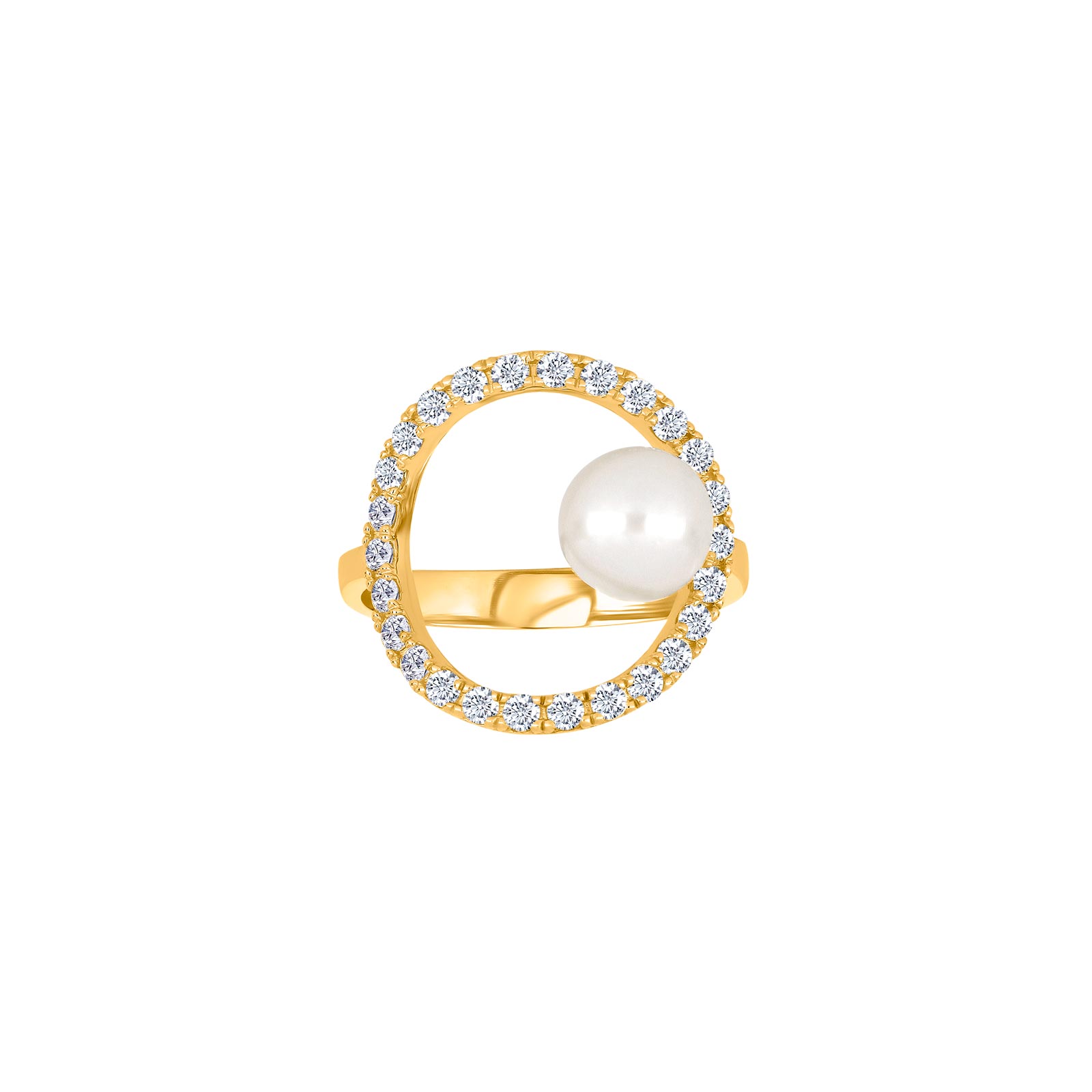 8kt. guldring cirkel m/ferskvandsperle og cz