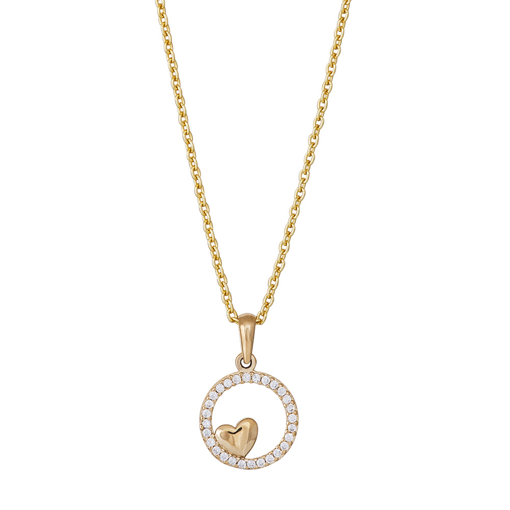 8kt. guldvedhæng hjerte i cirkel m/cz inkl. forg.