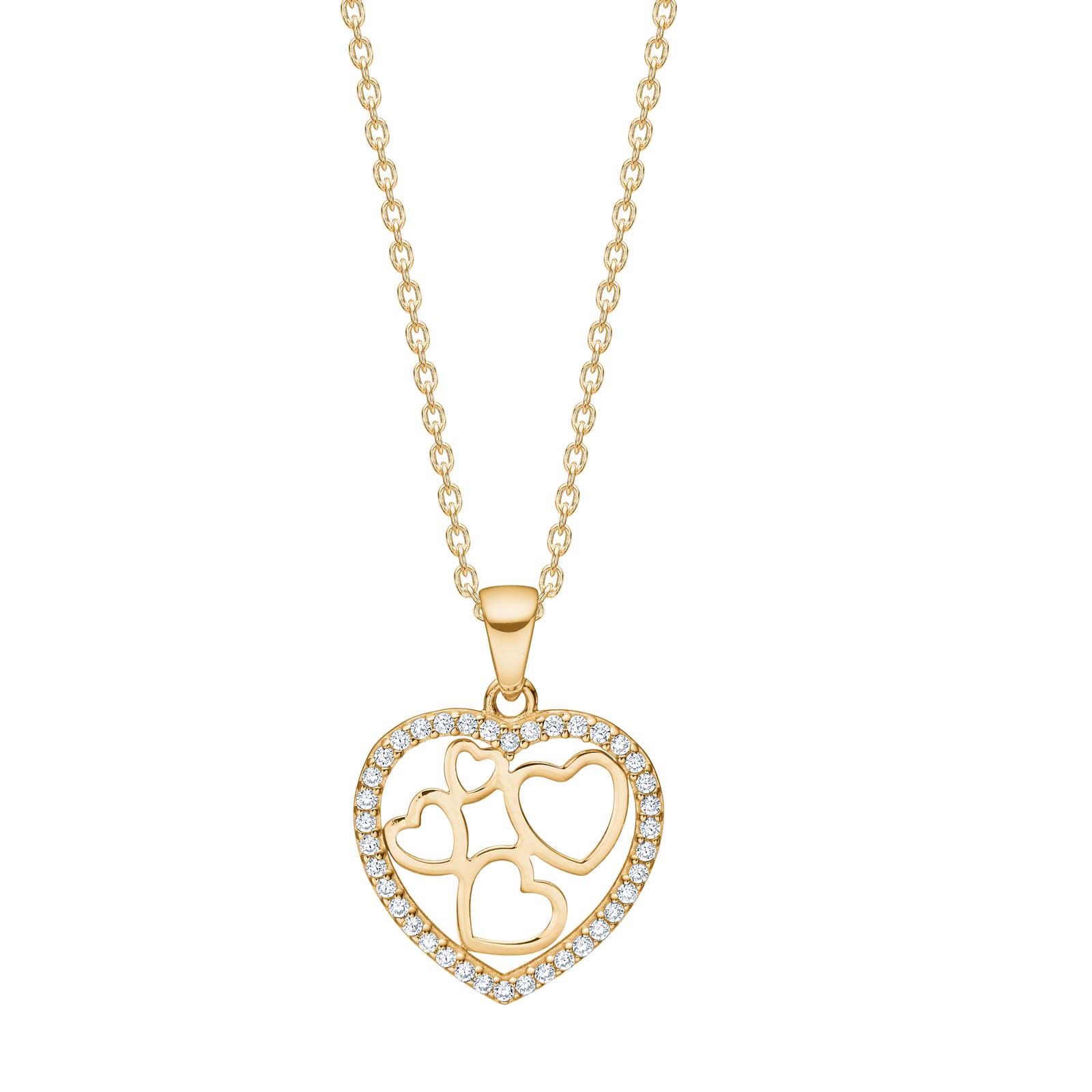 8kt. guldvedhæng hjerte m. cz inkl. forg. kæde antal