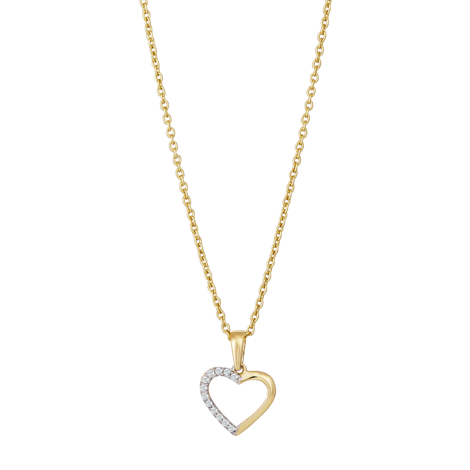 Dette elegante hjertehalskæde i 8 karat guld udstråler feminin charme og symbolsk betydning. Det smukke hjerte er prydet med funklende hvide cz-stene, der fanger lyset som diamanter. Sammen med den forgyldte sølvkæde på 45 cm får du et raffineret smykke, der passer perfekt til både hverdag og særlige øjeblikke.