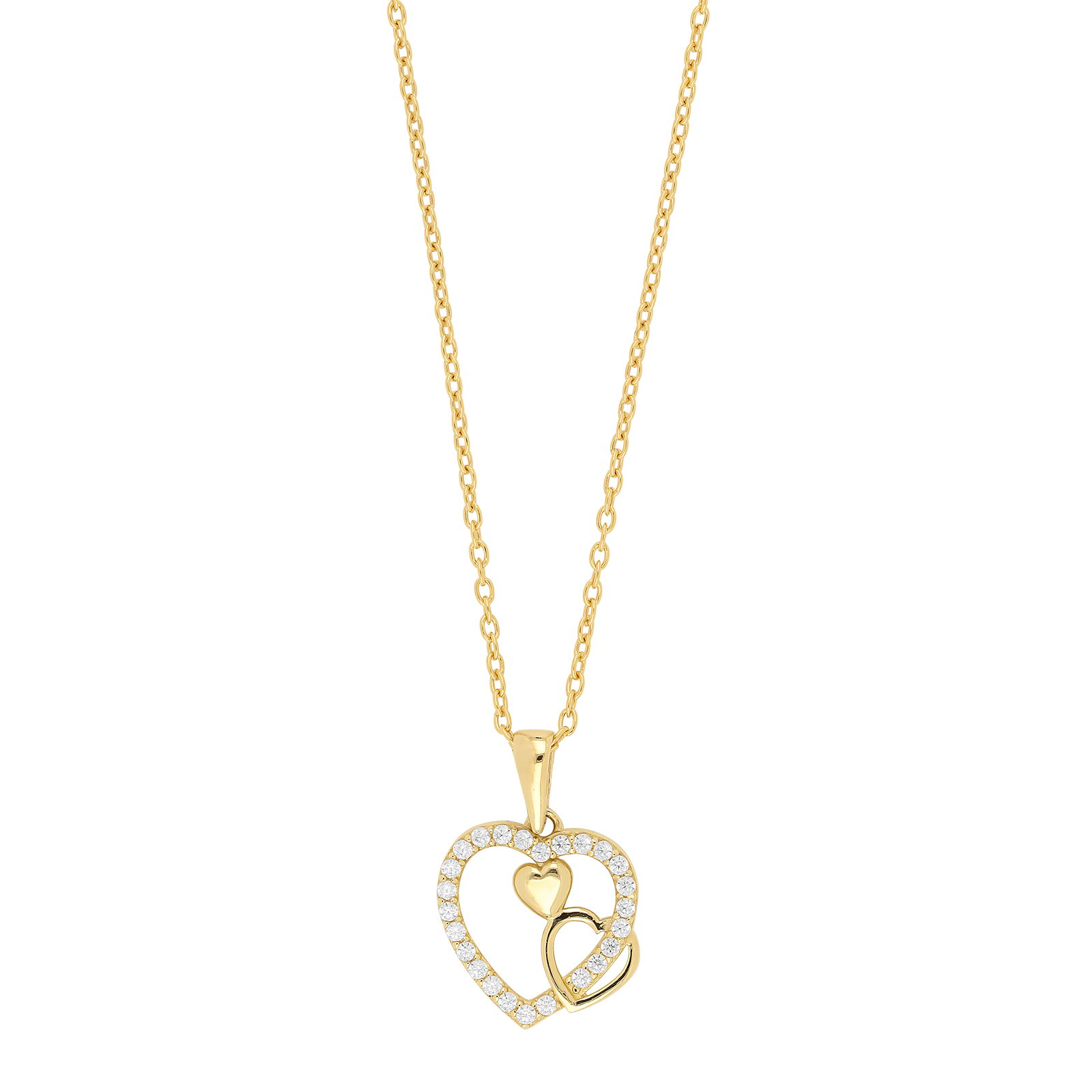 8kt. guldvedhæng hjerte m/cz inkl. forg. sølvkæde