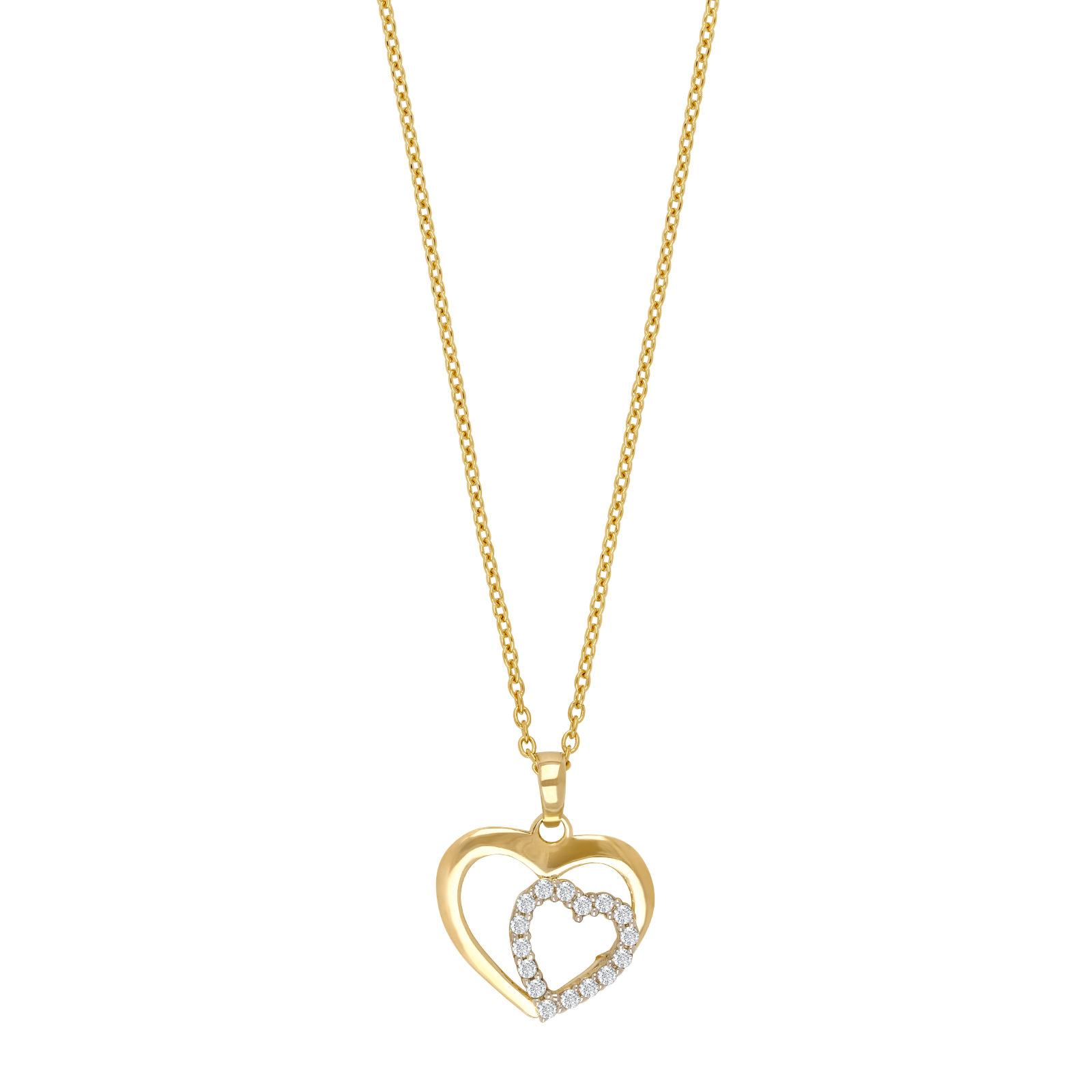 8kt. guldvedhæng hjerte m/cz inkl. forg. sølvkæde
