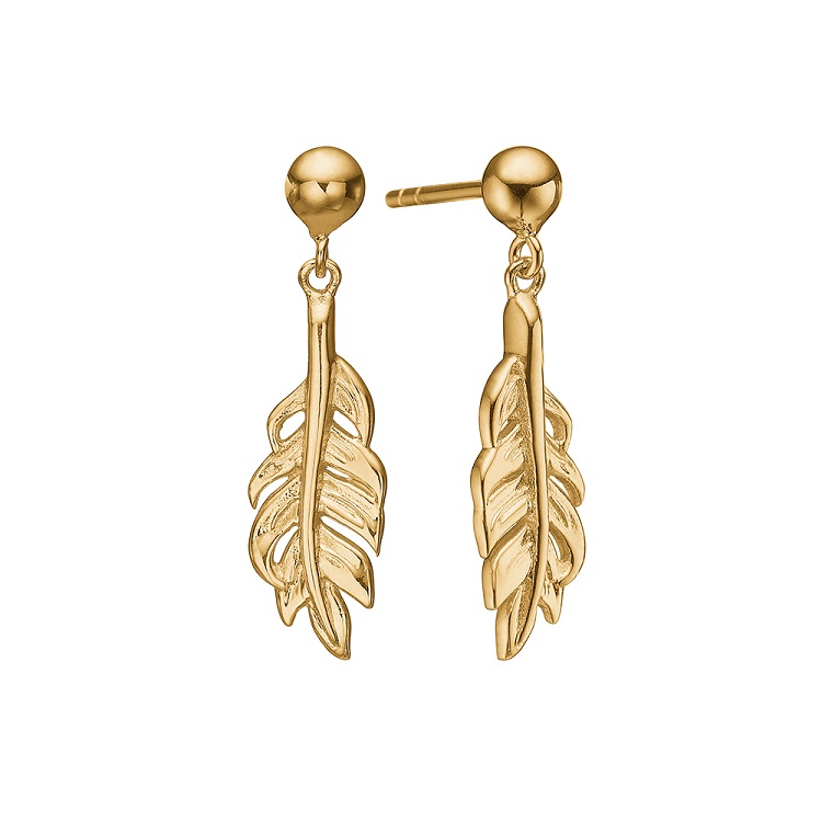 Øreringe i forgyldt 925 sterlingsølv med fjer
