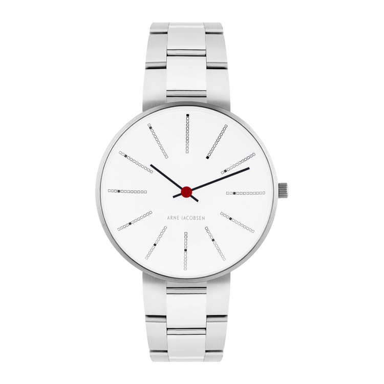Arne Jacobsen Bankers 53101-1628 uret er et perfekt ur, der er et eksempel på raffinement og elegance. Med en solid urkasse i rustfrit stål og hærdet dobbelt konveks M2-glas er uret designet til at holde til hårdt slid. Med en konkav urskive i hvidt sikrer urets moderne design læsbarhed og giver samtidig et stærkt æstetisk udtryk. Den børstede stålkasse passer perfekt sammen med den slanke, sølvfarvede stållænke og tilføjer et strejf af klasse. Endvidere bidrager kvarts urværket til dets præcision, hvilket gør det til et ideelt valg for professionelle, der kræver nøjagtighed og form. For at lette vedligeholdelse og rengøring er denne model vandbeskyttet op til 3 atm. Få denne upåklagelige blanding af form, funktion og mode med hjem - vælg Arne Jacobson Bankers 53101-1628 i dag!