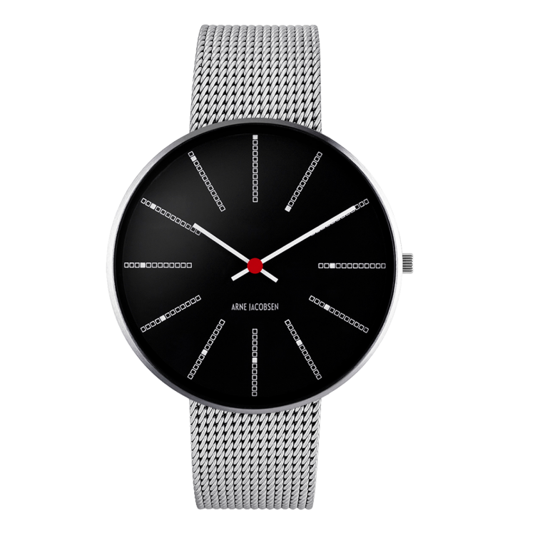 Den iøjnefaldende matte sorte urskive står i smuk kontrast til urkassens børstede stål og komplimenterer den unikke 20 mm mesh lænke i mat stål. Dette ur er drevet af et kvarts urværk og er meget nøjagtigt, hvilket giver dig pålidelighed i både form og funktion. Se fantastisk ud med det sofistikerede Arne Jacobsen Bankers 53105-2008 ur, der er designet til at følge med i hverdagen uden at gå på kompromis med stilen!