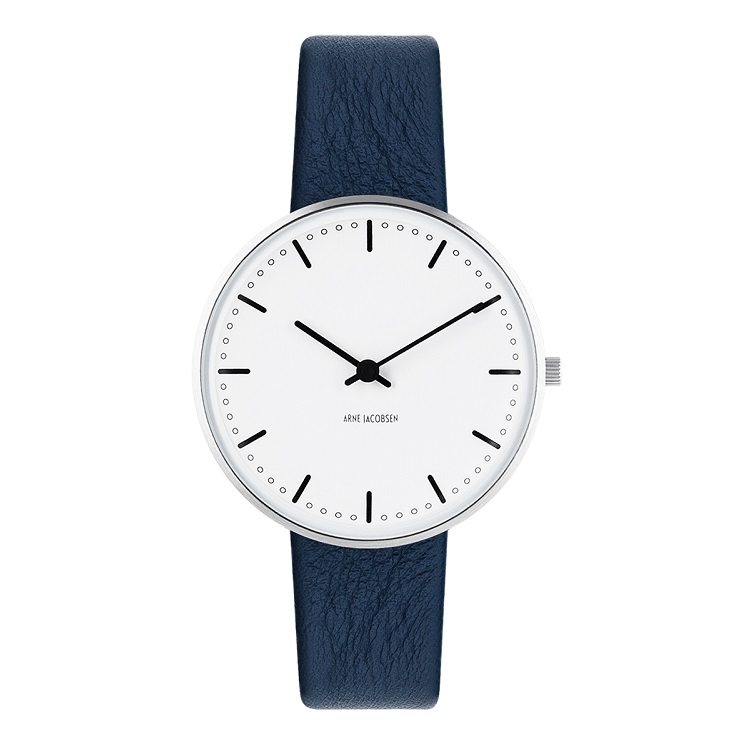 Den solide urkasse i rustfrit stål indkapsler en konkav urskive udstyret med hærdet dobbelt konvekst M2-glas og giver en vandmodstand på 3 ATM. Modellens urskive med en diameter på 34 mm giver den perfekte balance mellem underspillet elegance og urban funktionalitet, komplet med en fængslende hvid farve, der bidrager til dens unikke æstetiske vibrationer. Den marineblå læderrem, der suppleres af en urkasse i børstet stål, giver den helt rigtige mængde af sikker og samtidig behagelig berøring - alt sammen drevet af et pålideligt kvartsurværk under den holdbare ydre skal