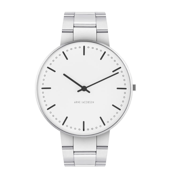 Arne Jacobsen City Hall 53202-2028 er et udsøgt ur, der er lavet til sofistikerede og stilfulde personer. Det elegante design har en solid urkasse i rustfrit stål med en konkav urskive, hærdet dobbelt konvekst M2 glas og 3 ATM vandmodstand. Model City Hall har en urdiameter på 40 mm og en fantastisk hvid urskive, der er parret med en børstet stålkasse for ekstra visuel appel. Med sin 20 mm sølvfarvede stål lænke giver dette ur maksimal komfort og enestående stil uanset lejligheden. Kvartsværket sikrer nøjagtighed og pålidelighed, som du kan stole på. Arne Jacobsen City Hall 53202-2028 vil blive dit mest pålidelige tilbehør til at vise din overlegne smag inden for ure.