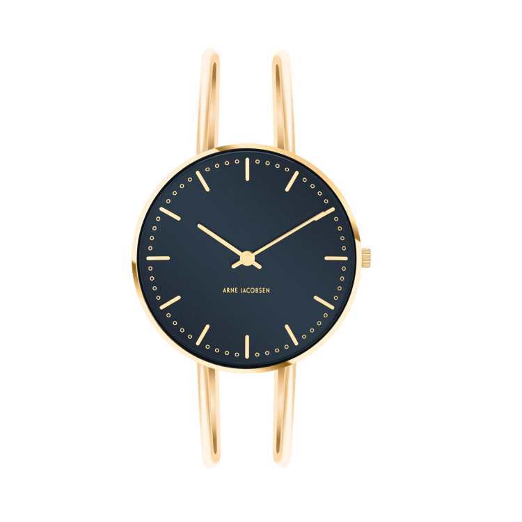 Dette elegante og sofistikerede ur fra Arne Jacobsen er den perfekte måde at gøre et fashion statement på. City Hall 53207-1619-modellen har en solid urkasse i rustfrit stål med en unik konkav urskive, hvilket giver den et endnu mere fængslende look. Glasset er dobbelt konveks hærdet M2 for ekstra styrke og beskyttelse, og vandmodstanden er 3 ATM. Designet har flere imponerende kvaliteter, som du helt sikkert vil sætte pris på: urets diameter måler 34 mm, urskiven er tidløs Oxford-blå, og urkassen leveres i poleret guld. Som supplement til det hele er der en bøjlelænke i glamourøst poleret guld med en bredde på 16 mm. Urværk er kvarts. Med dette attraktive stykke på dit håndled kan du gå hvor som helst uden at bekymre dig om, at du ved, at du ser bedst ud, uanset hvad lejligheden kræver. Få dette klassiske design i dag.