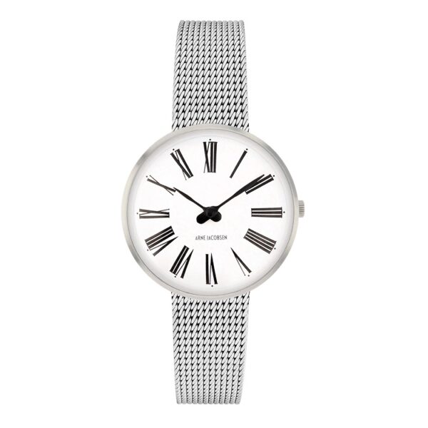 Arne Jacobsen Roman 53300-1408 er skabt til kvinden, der værdsætter æstetik, ro og gennemført minimalisme. Det slanke 30 mm ur kombinerer en klar hvid urskive med børstet stål og en elegant mesh-lænke. Resultatet er et let, feminint ur, der løfter både hverdags- og arbejdslook.
