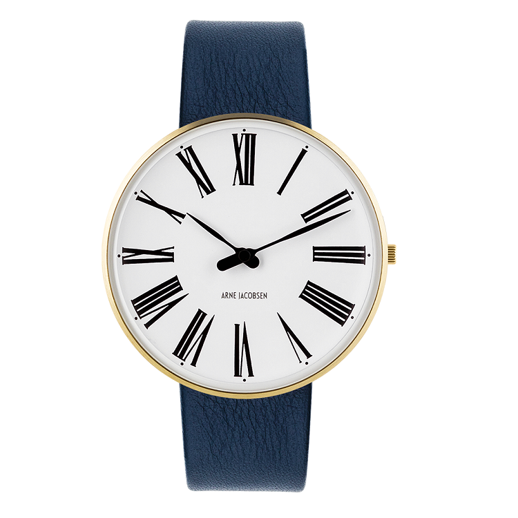 Arne Jacobsen Roman 53308-2004G er mere end et ur – det er en designarv. Den hvide urskive, guld-børstede stålkasse og den mørkeblå læderrem skaber et elegant statement, der føles lige så relevant i dag som i 1930’erne. Et ur, der signalerer ro, stil og bevidst kvalitet.