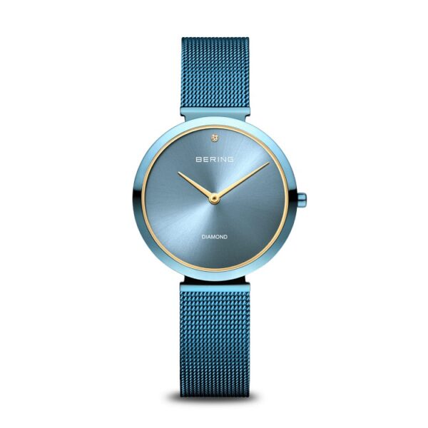Bering Charity 18132-Charity1 er et ultra-slankt dameur skabt til kvinder, der værdsætter rolig luksus og bevidste valg. Den arktisk blå sunray-skive, guldtonede visere og den diskrete diamant ved kl. 12 giver et raffineret smykkeudtryk. Et ur, der føles let, ser eksklusivt ud og passer perfekt til både hverdag og særlige øjeblikke.