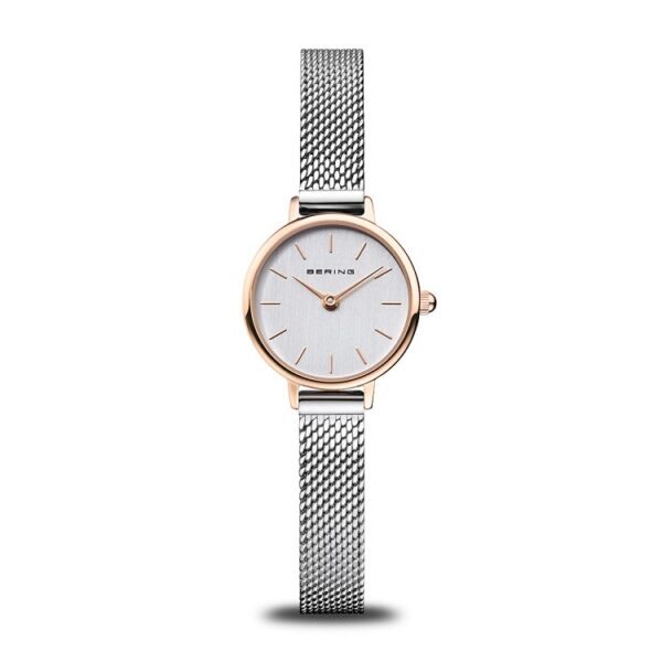 Bering Classic 11022-064 er skabt til kvinden, der værdsætter ro, balance og raffineret design. Med sin slanke 22 mm urkasse i roséguldfarvet, poleret rustfrit stål og et lyst sølvgråt urskive udstråler uret skandinavisk minimalisme. Det er let, feminint og diskret – perfekt både til hverdag og elegante øjeblikke, hvor detaljerne tæller.