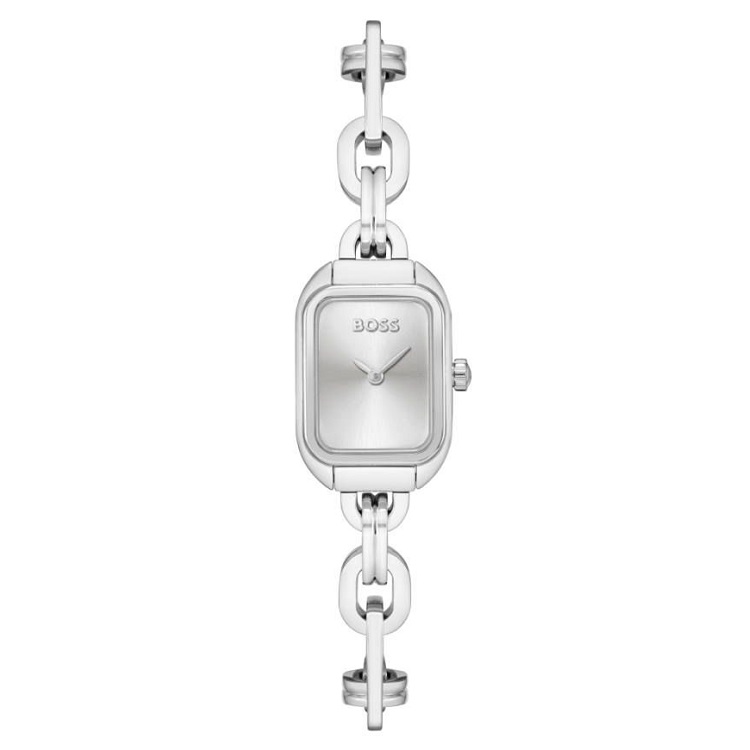 Vi præsenterer Boss Hailey Business 1502654, et sofistikeret og stilfuldt ur, der er perfekt til den moderne kvinde. Dette ur har en elegant urkasse og lænke i rustfrit stål, som smukt modsvares af en skinnende sølvfarvet urskive. Den fine diameter på 19 mm gør det elegant underspillet, mens vandmodstanden på 3 ATM betyder, at du kan bære det med selvtillid, uanset hvor din dag fører dig hen. Uanset om du er på kontoret eller i byen, vil dette ur helt sikkert fremhæve ethvert outfit. Tilføj et strejf af luksus til dit liv med Boss Hailey Business 1502654.