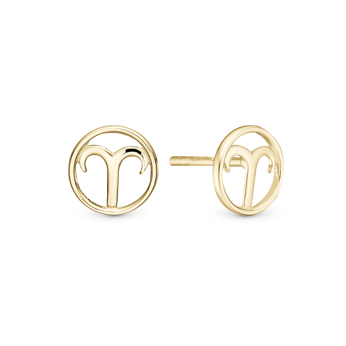 Flotte forgyldte øreringe med vædderens stjernetegn.