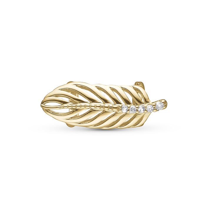 Christina Charm Feather forgyldt er skabt til dig, der ønsker et smykke med både elegance og personlig betydning. Den slanke, åbne fjer i forgyldt sterling sølv fremstråler lethed, mens de fem ægte hvide topaser tilfører et diskret glimt, der fanger blikket. Et design, der føles eksklusivt uden at være prangende.