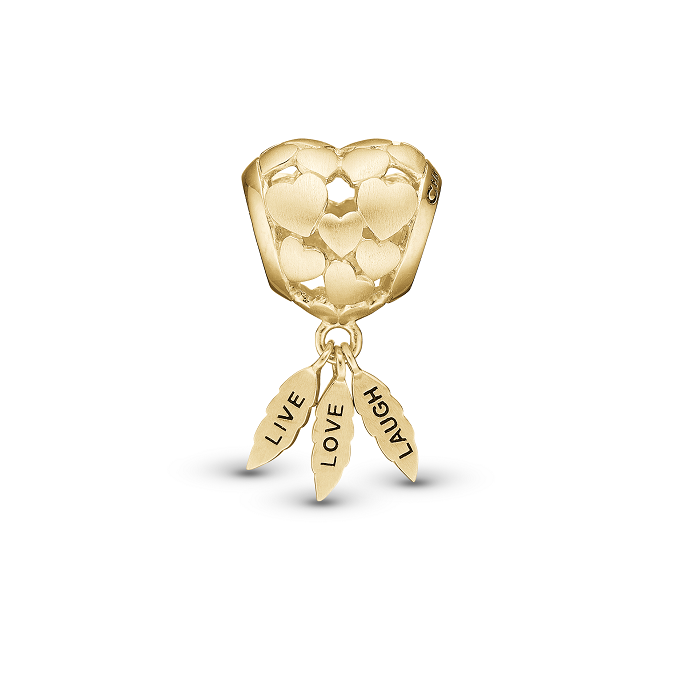 Christina “Live, Love, Laugh” er mere end et charm – det er en påmindelse om det, der virkelig betyder noget. Det romantiske dangle-charm er udført i 18 karat forgyldt 925 sterling sølv og designet til Christinas ikoniske armbåndssystem. De tre elegante, hængende vedhæng skaber bevægelse og giver dit armbånd et feminint og personligt udtryk.