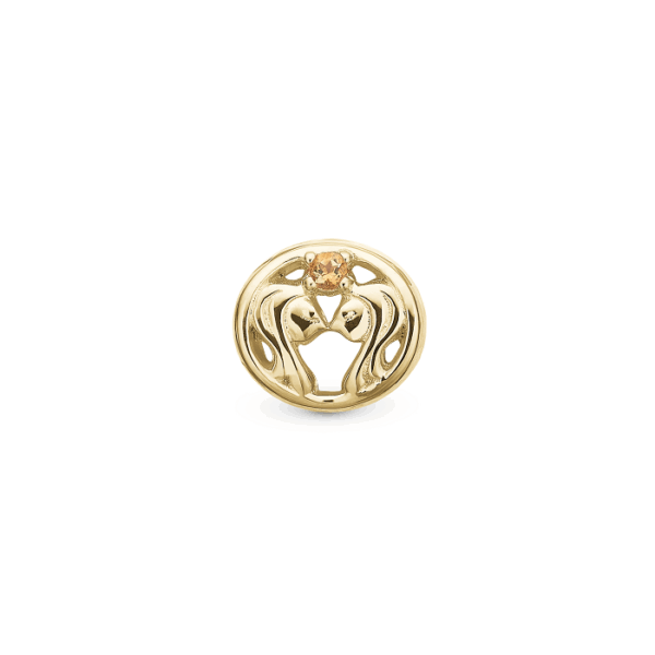 Christina – Charm Stjernetegn Tvillingen er skabt til den nysgerrige sjæl, der elsker forandring og personlig stil. Det elegante vedhæng i 925 sterling sølv – eller forgyldt sølv – fremhæves af en ægte citrin, som symboliserer fornyelse og klarhed. Et tidløst smykke, der giver dit armbånd mening og glød.