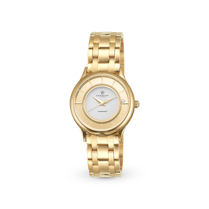 Christina Collect ur forgyldt er mere end et ur – det er et personligt smykke, der tilpasses dit liv og din stil. Den elegante, guldbelagte stålkasse på ca. 32 mm giver et feminint og tidløst udtryk, mens det schweiziske quartzværk sikrer præcision med minimal vedligeholdelse. En bevægelig diamant i renden omkring skiven tilfører et eksklusivt touch, der fanger blikket og giver følelsen af luksus i hverdagen.