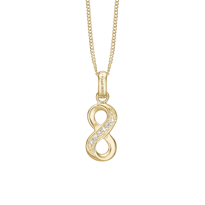 Christina Eternity vedhæng 680-G50 er skabt til dig, der ønsker mere end blot et smykke. Det forgyldte sterlingsølv kombineret med seks funklende hvide topazer giver et eksklusivt udtryk, der holder år efter år. Uendelighedssymbolet taler direkte til følelserne og gør vedhænget til en personlig fortælling om kærlighed, nærhed og varige bånd – perfekt som gave eller selvforkælelse.