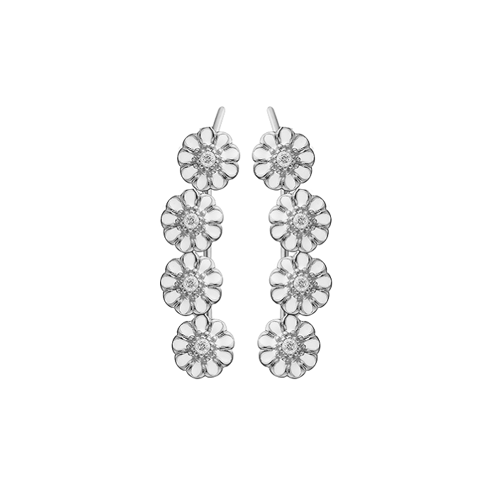 Flotte øreringe med smykke margueritter og topaser. Øreringene går op ad øret og er i sølv.