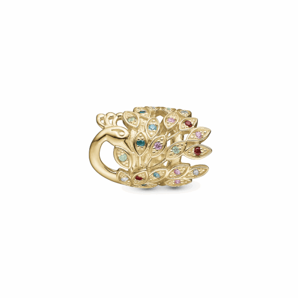 Dette charm har smukke multifarvede zirkoner og sidder flot på armbåndet.