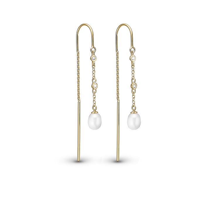 Disse øreringe har en længere kæde med smukke ferskvandsperler og zirkoner.