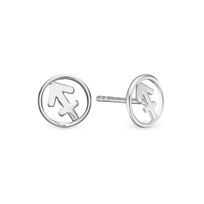 Flotte øreringe i sølv med skyttens stjernetegn.