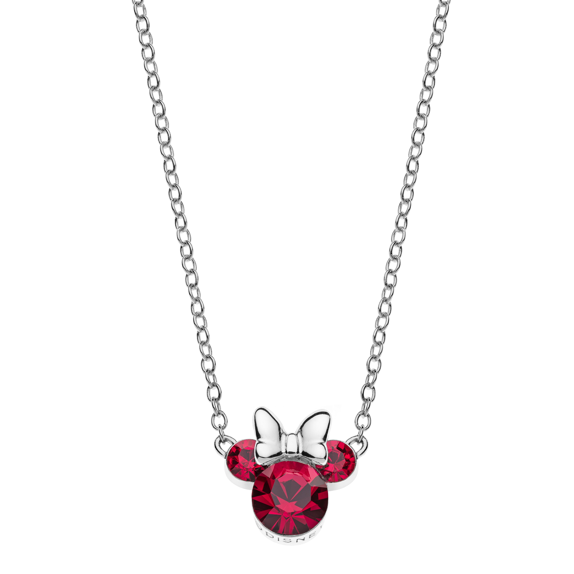 Fin halskæde i sølv med Minnie Mouse i en smuk rød farve.