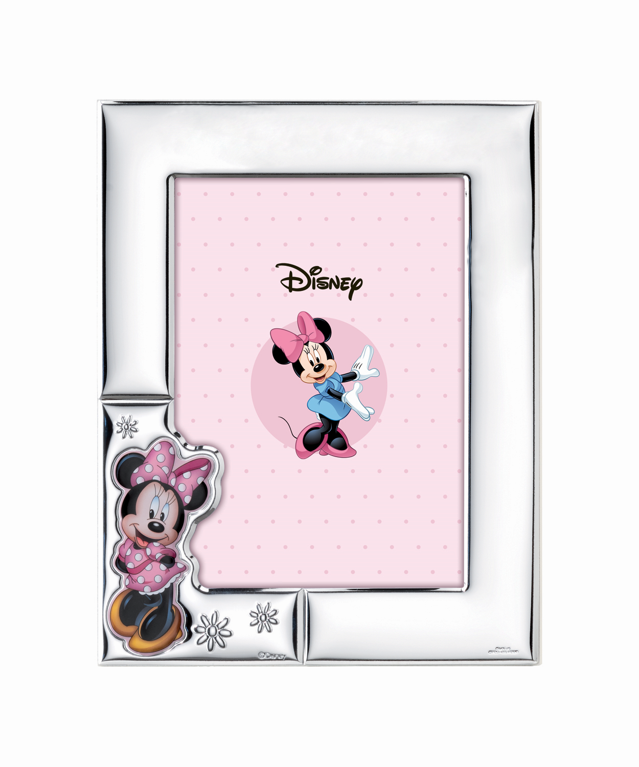 Disney Minnie fotoramme, Minnie i lyserød og blomster i venstre side af rammen. Mål: 13 x18 cm.