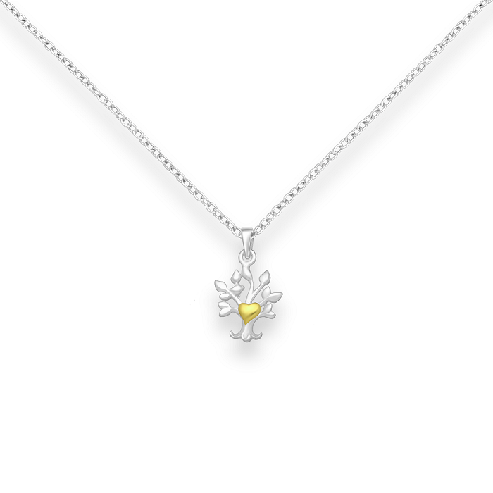 Fin halskæde i sølv livets træ med forgyldt hjerte