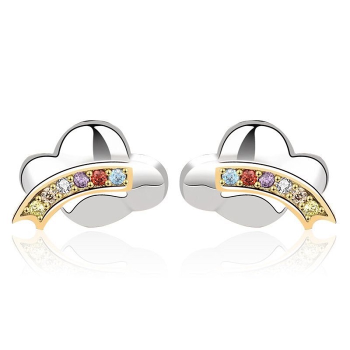 Fine øreringe formet som en sky med regnbuefarver.