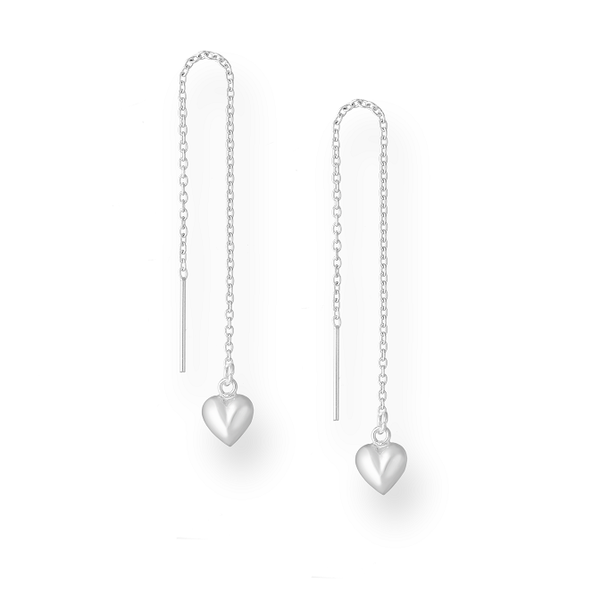 Moderne øreringe med kæde, afsluttes med fint hjerte.