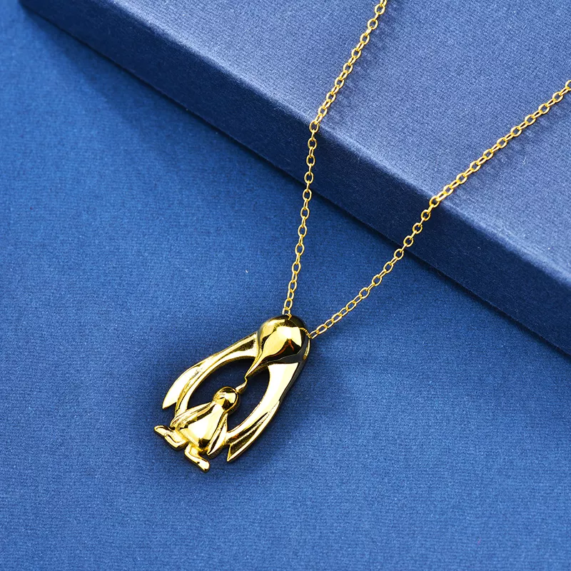 Smukt vedhæng i 925 forgyldt sølv med pingvin mor og barn