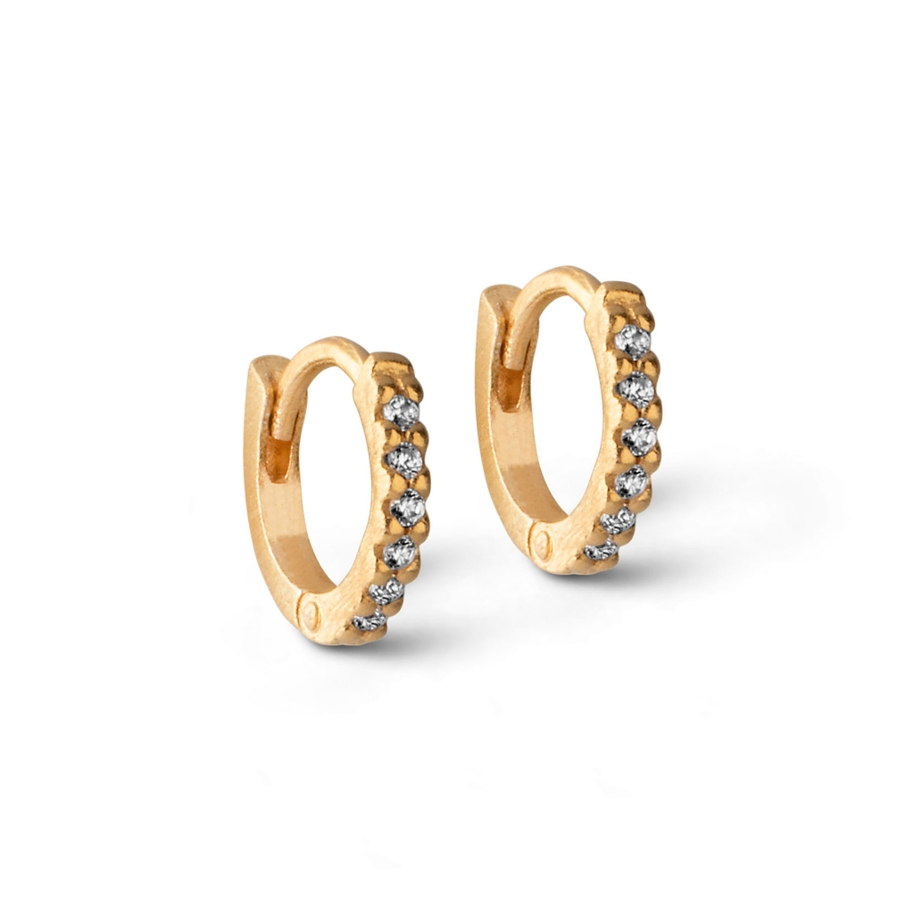 Søde Hoops Petite Flora øreringe med hvide sten i forgyldt fra Enamel