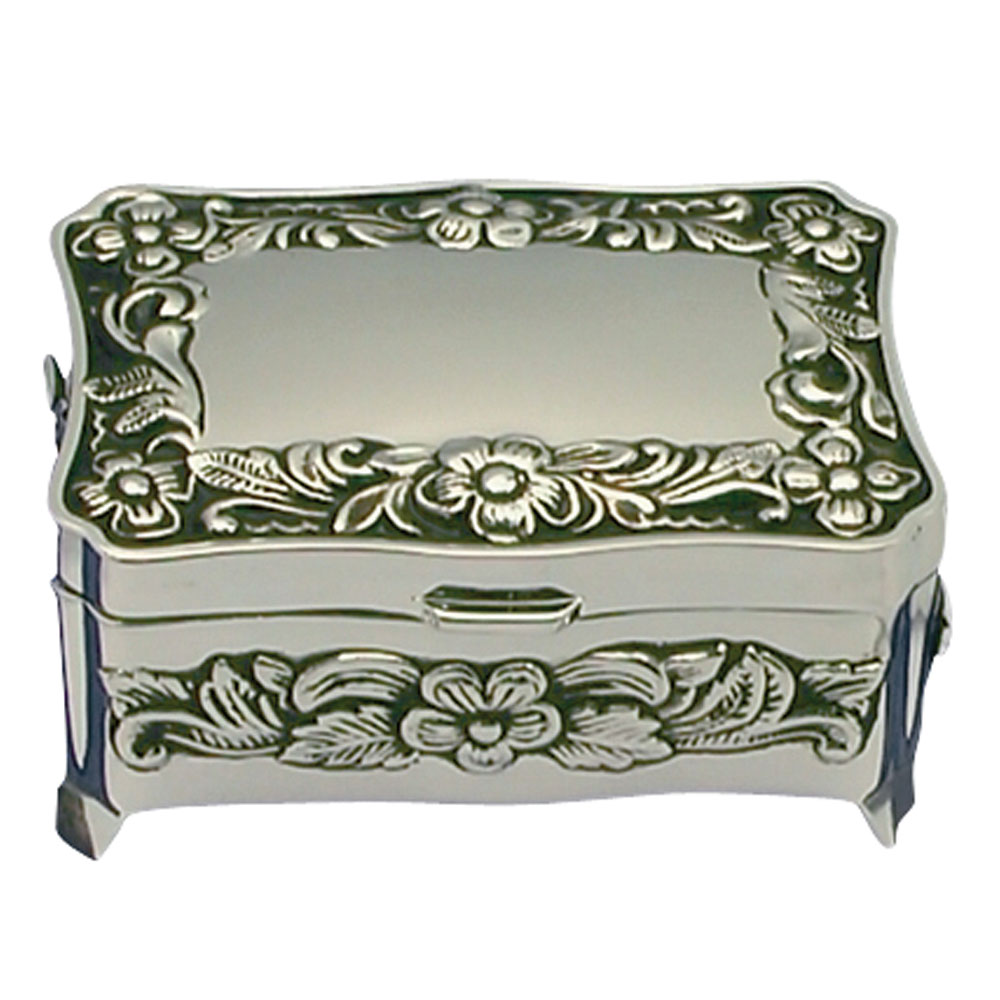 Forkromet smykkeskrin m. blomster