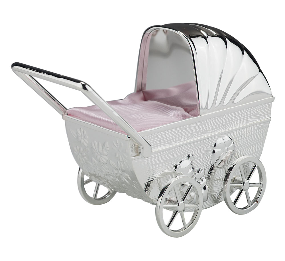 Forkromet sparebøsse dukkevogn