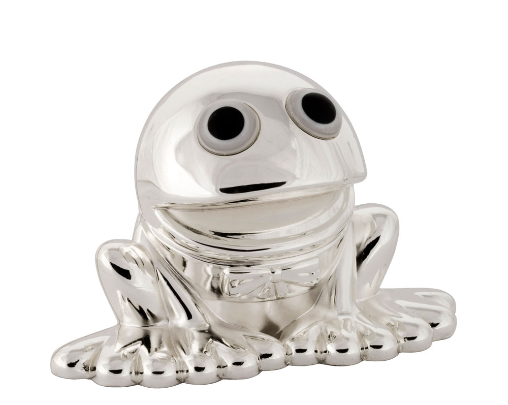 Forkromet sparebøsse Kaj er mere end en sød figur – den er et minde, en gave og en begyndelse på gode sparevaner. Den ikoniske frø fra Kaj & Andrea vækker glæde hos både børn og voksne, mens det blanke metal giver et eksklusivt, tidløst udtryk, der passer perfekt ind på børneværelset.