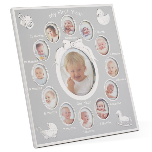 Fotorammen “Mit første år” forvandler babys første 12 måneder til et smukt minde, du kan glæde dig over hver dag. Med plads til ét foto pr. måned og et større billede i midten skabes en rørende fortælling om udvikling, kærlighed og små øjeblikke, der ellers alt for hurtigt glemmes.