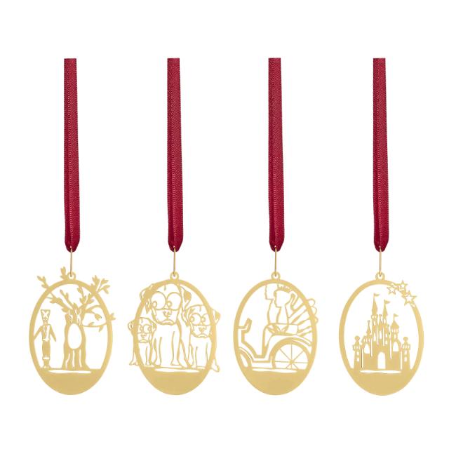 4 stk. julepynt med forskellige eventyr i 18 karat guldbelagt messing