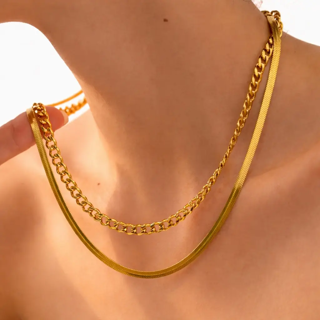 Halskæde i vandfast forgyldt stål med dobbeltkæde 163027