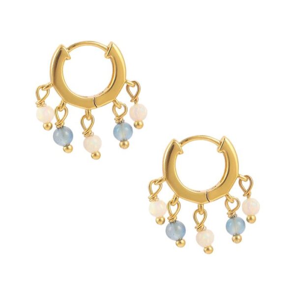Søde Cliff øreringe med lyseblå agat og opal kugler på i 18 kt. forgyldt sterlingsølv fra Hultquist Copenhagen.