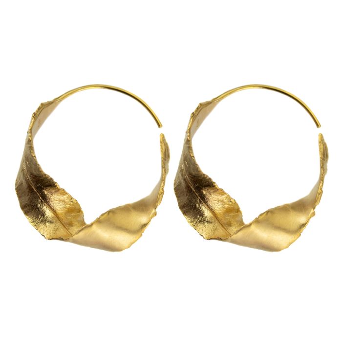 De elegante flotte øreringe er designet som et let snoet blad, med en naturlig overflade.